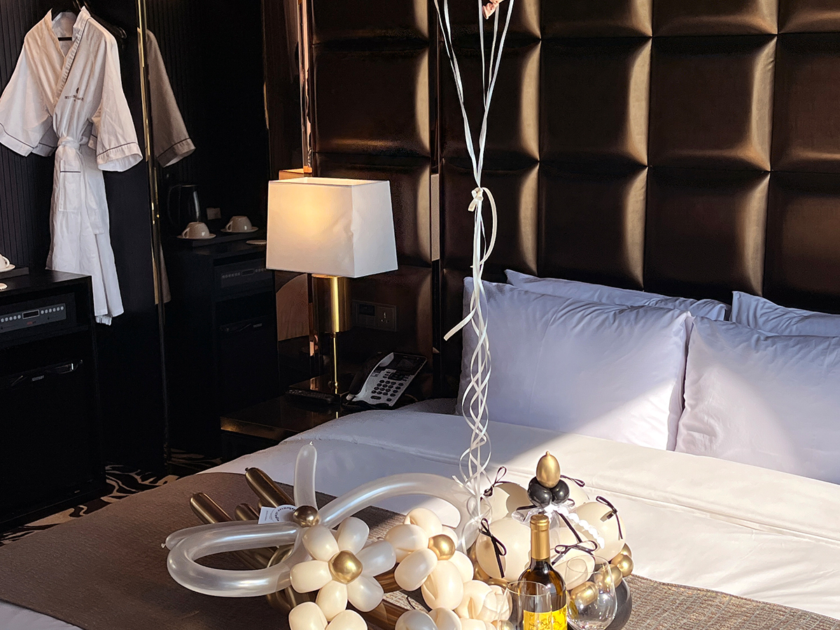 여유로운 휴식 공간과 편안한 킹사이즈 더블 베드가 구비되어 있는 객실