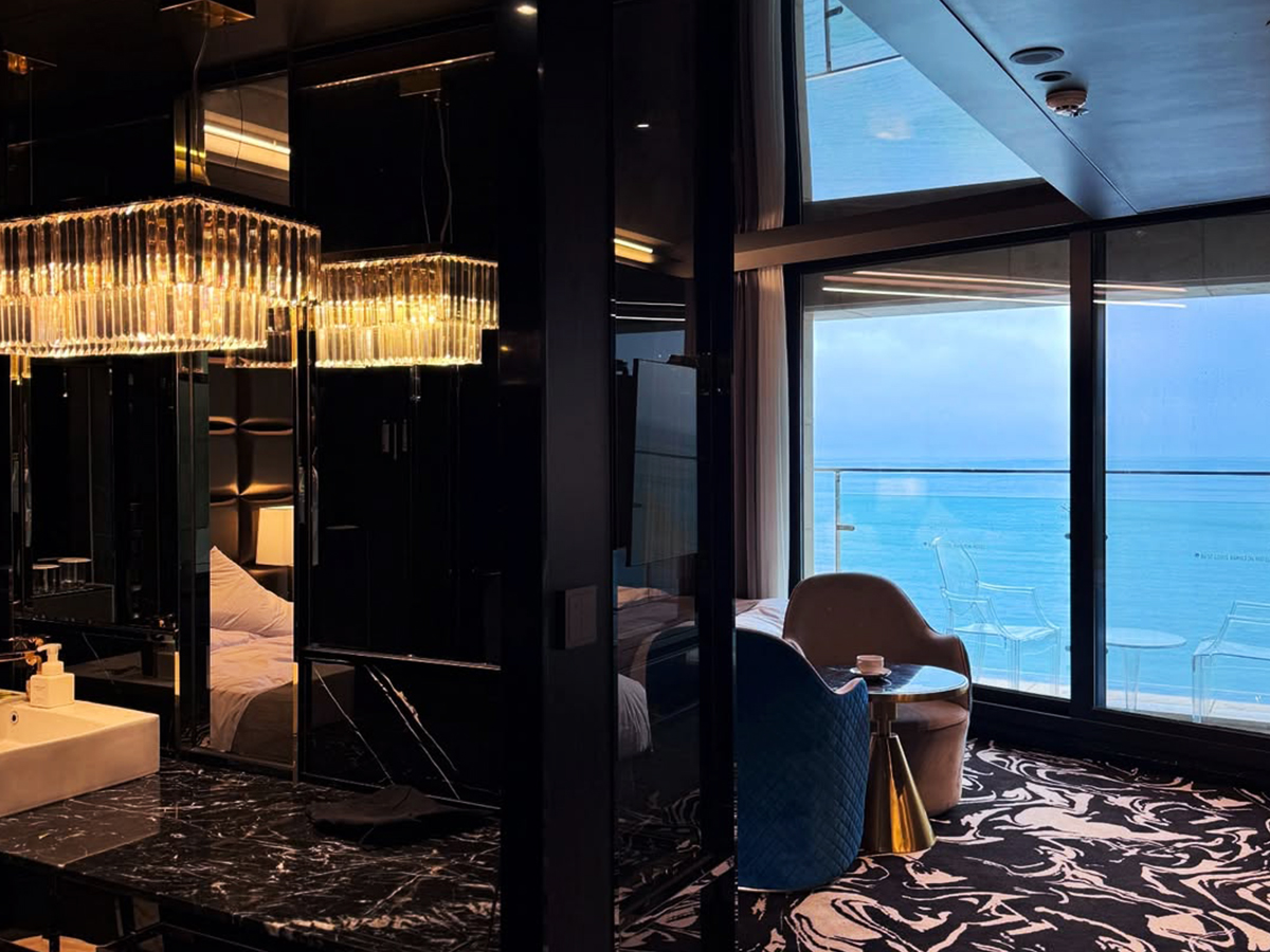 더블 침대 하나, 싱글 침대 하나로 구성되어 있으며, 오션뷰를 바라보며 히노끼 욕조에서 힐링 가능합니다.
